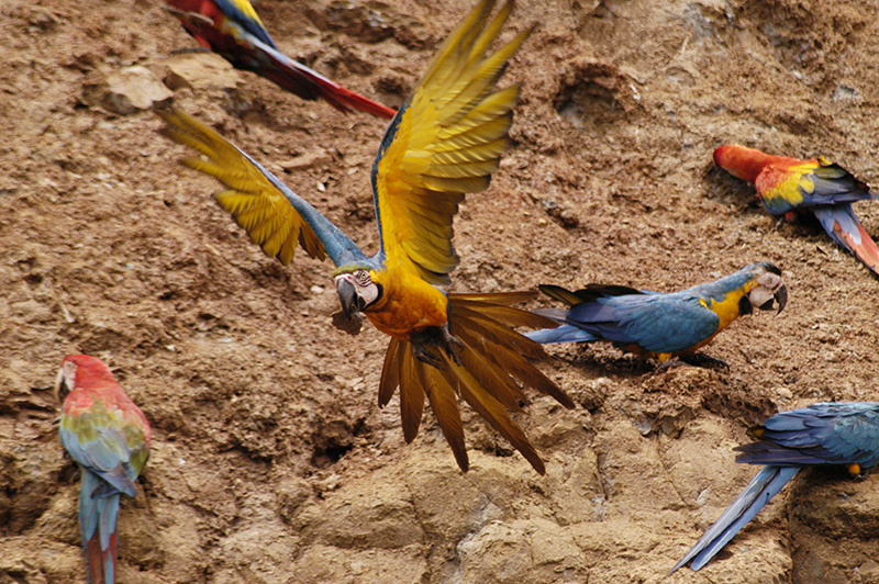 The Tambopata Research Centre in Peru is one of the best places to visit a Macaw clay lick.