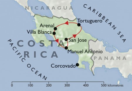 Transfer to Tortuguero and visit the community of TortugueroA very early start for a beautiful four-hour coach journey through the Braulio Carillo National Park to the pier, then a two-hour boat ride to your jungle lodge in Tortuguero, cruising down jungle waterways inhabited by monkeys and varied birdlife. Located on the Caribbean coast, Tortuguero is a beautiful national park, thriving with all kinds of wildlife. After lunch and some time to settle at the lodge, visit the community of Tortuguero and learn about the extraordinary efforts made locally to protect the sea turtles, which nest here at certain times of the year. The road and boat journey to Tortuguero, and the activities there, are carried out by your lodge with other guests staying at the lodge. The road journey is sometimes taken in a large coach.